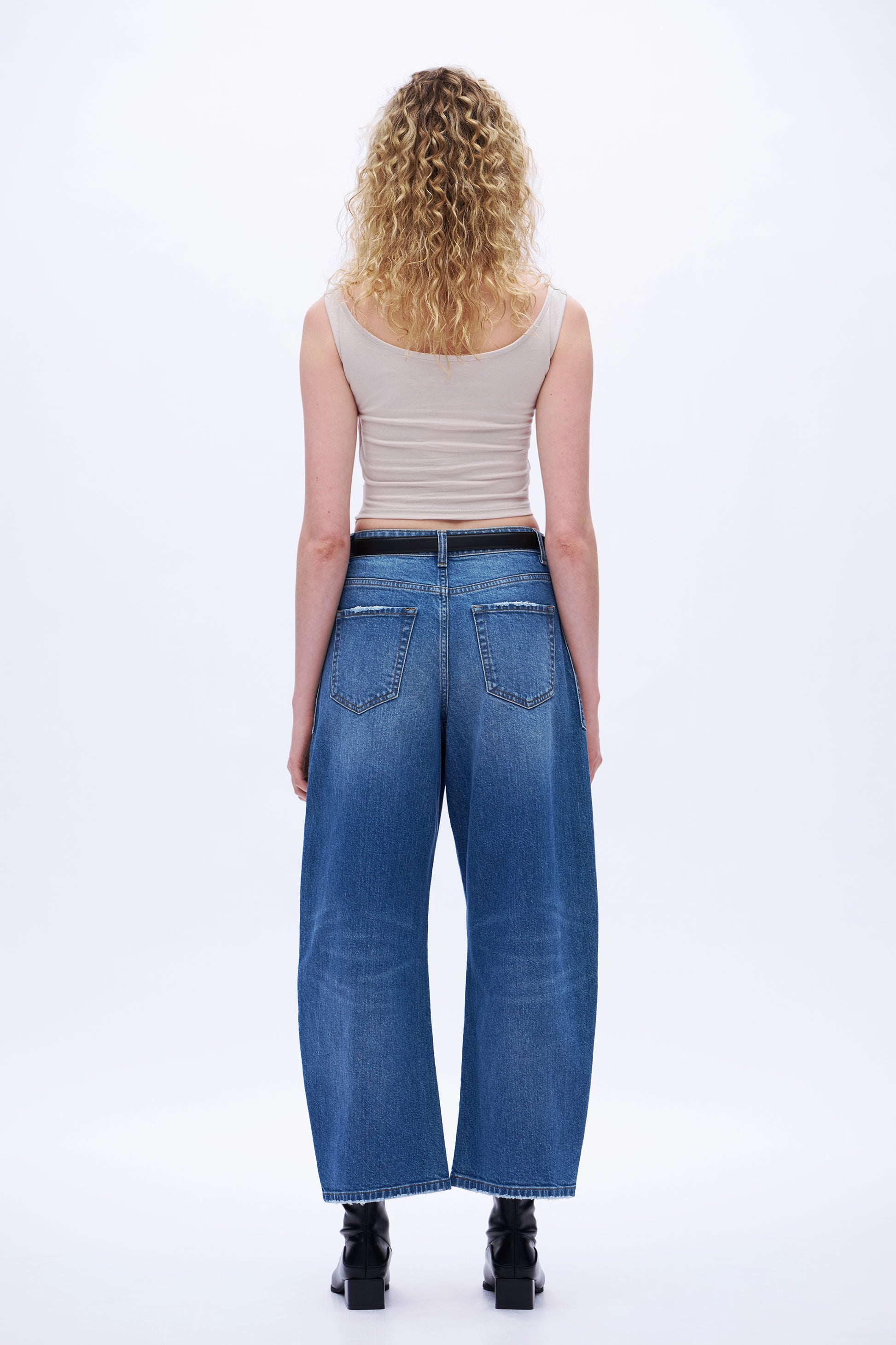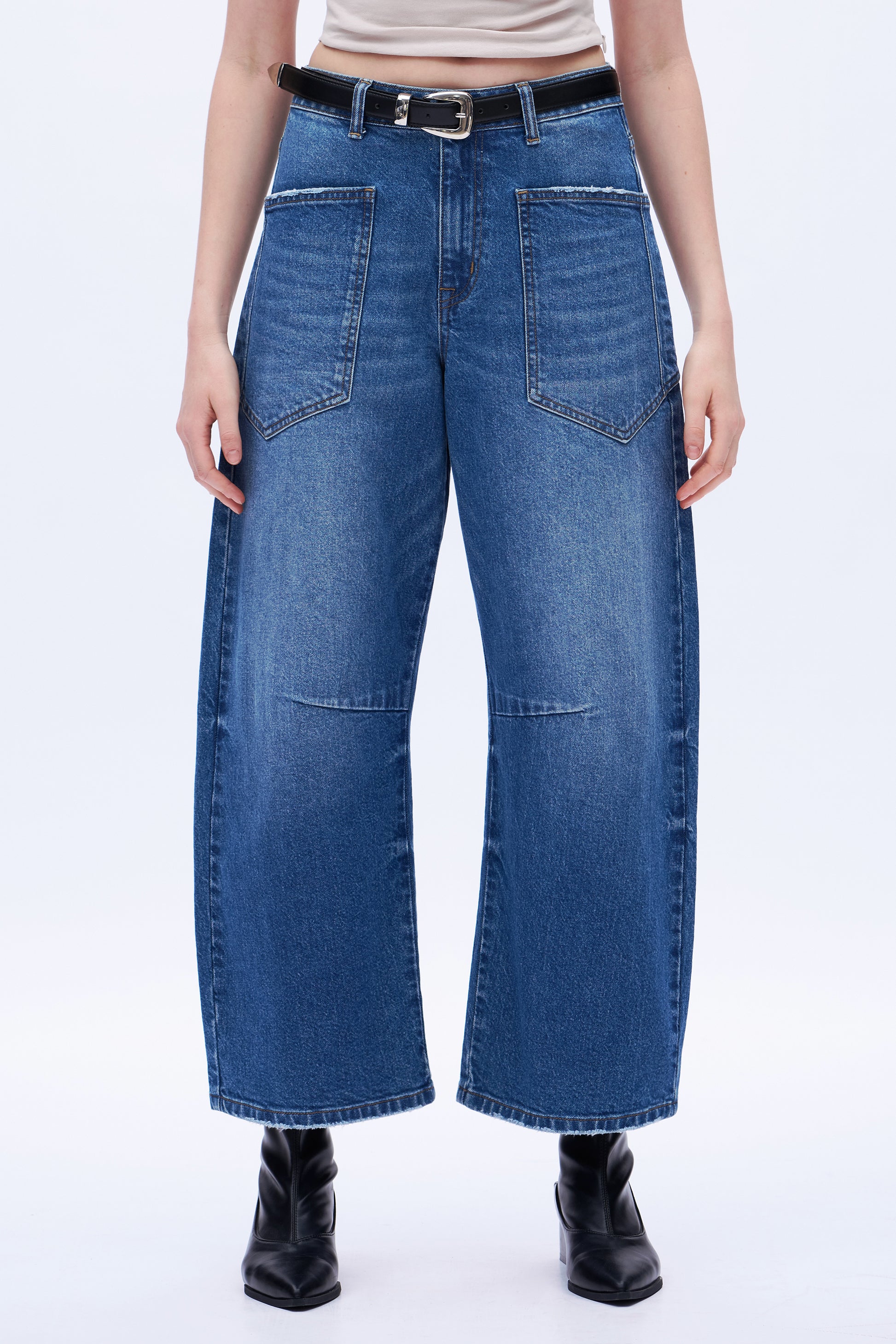 Super High Rise Balloon Denim Jeans With Front Pocket Patch DEOX001 Medium Blue