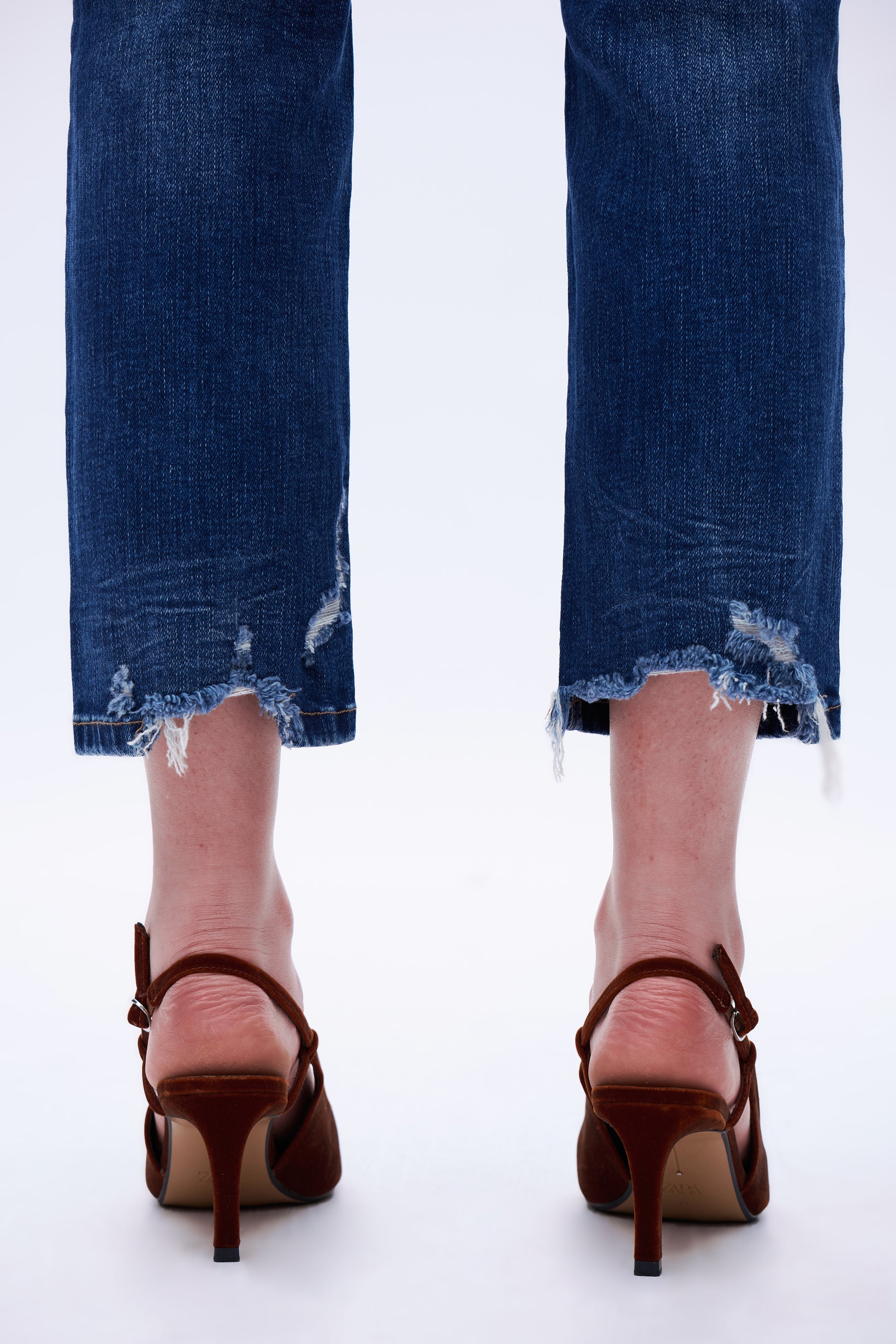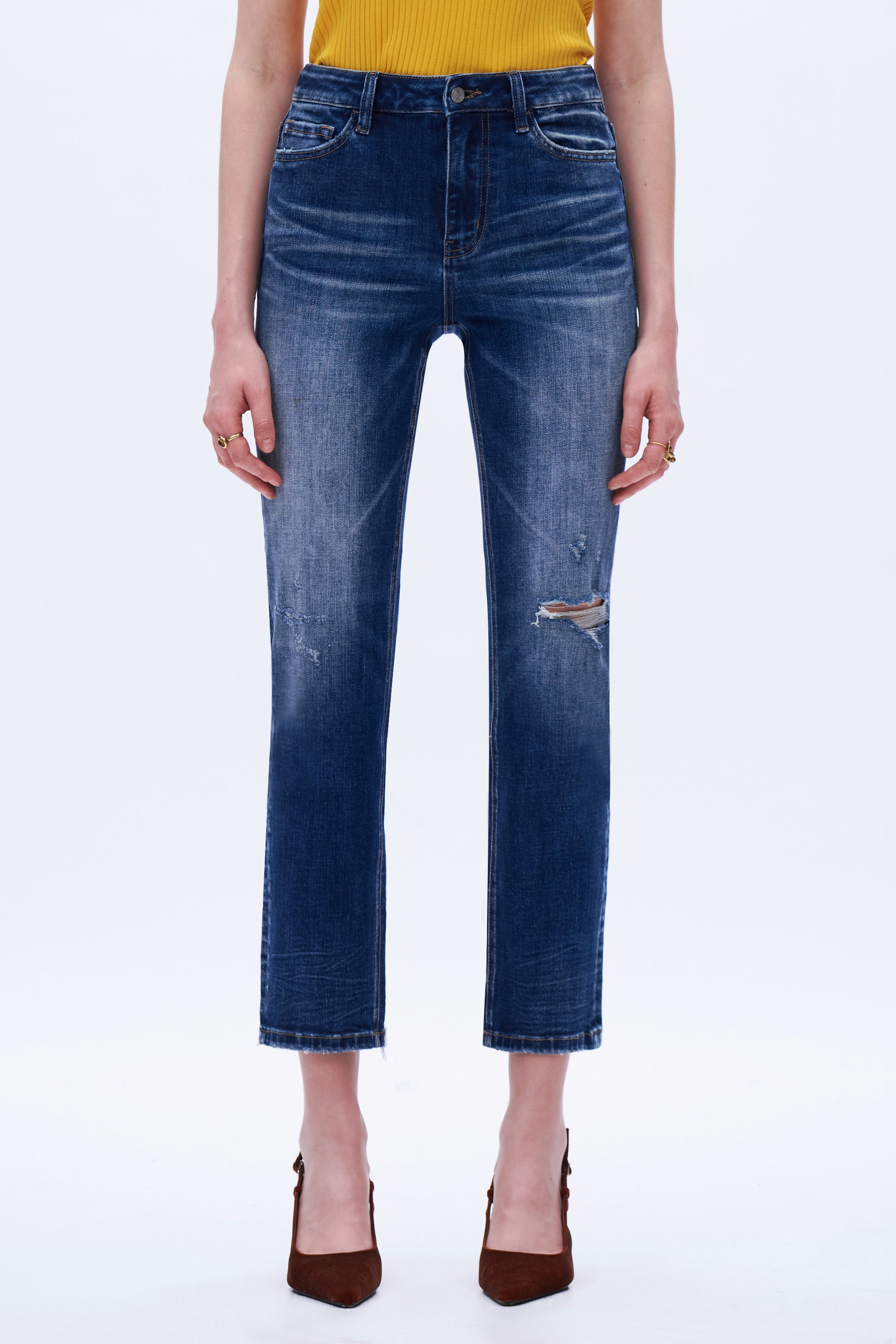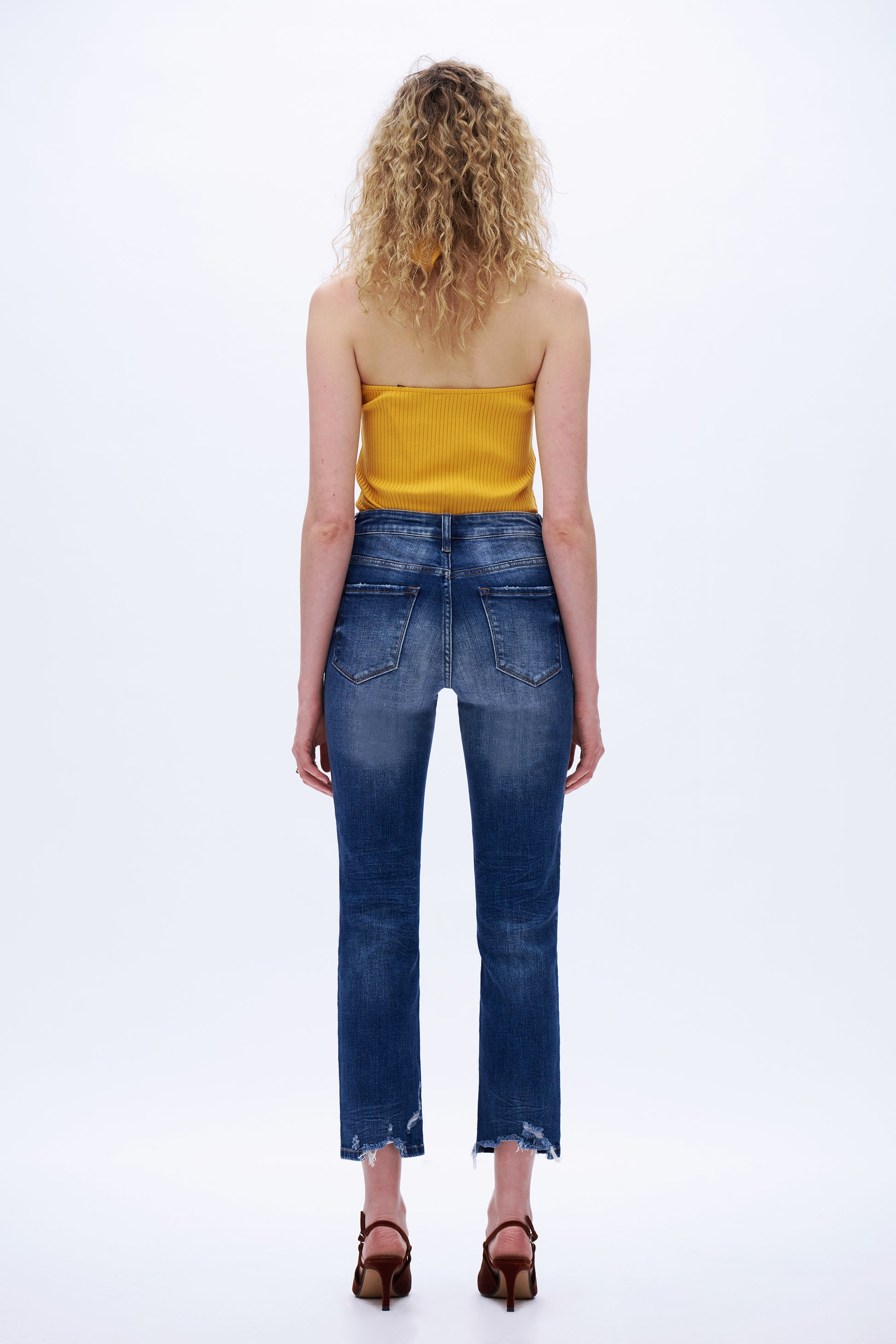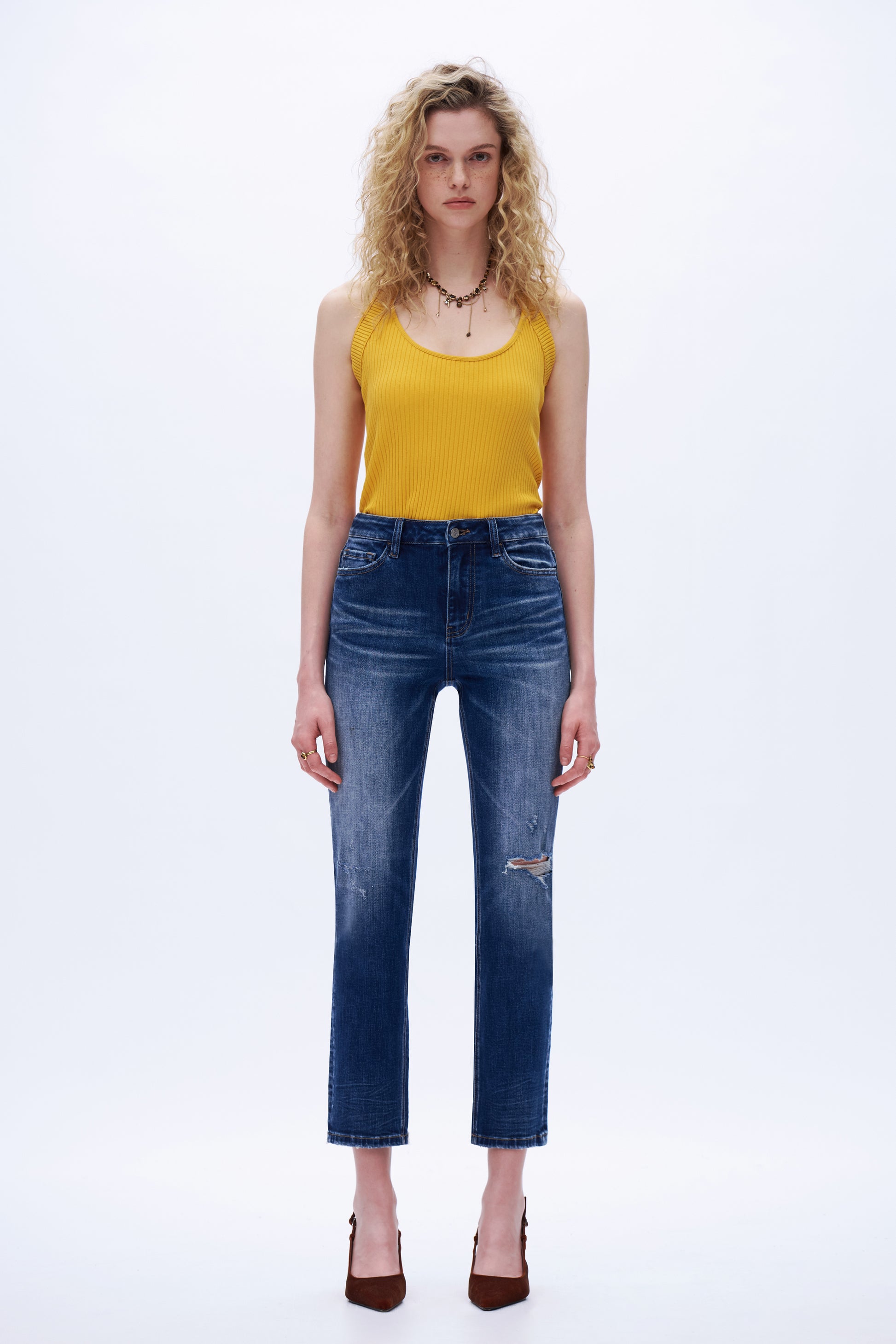 High Rise Distressed Denim Jeans DETM003 Dark Blue
