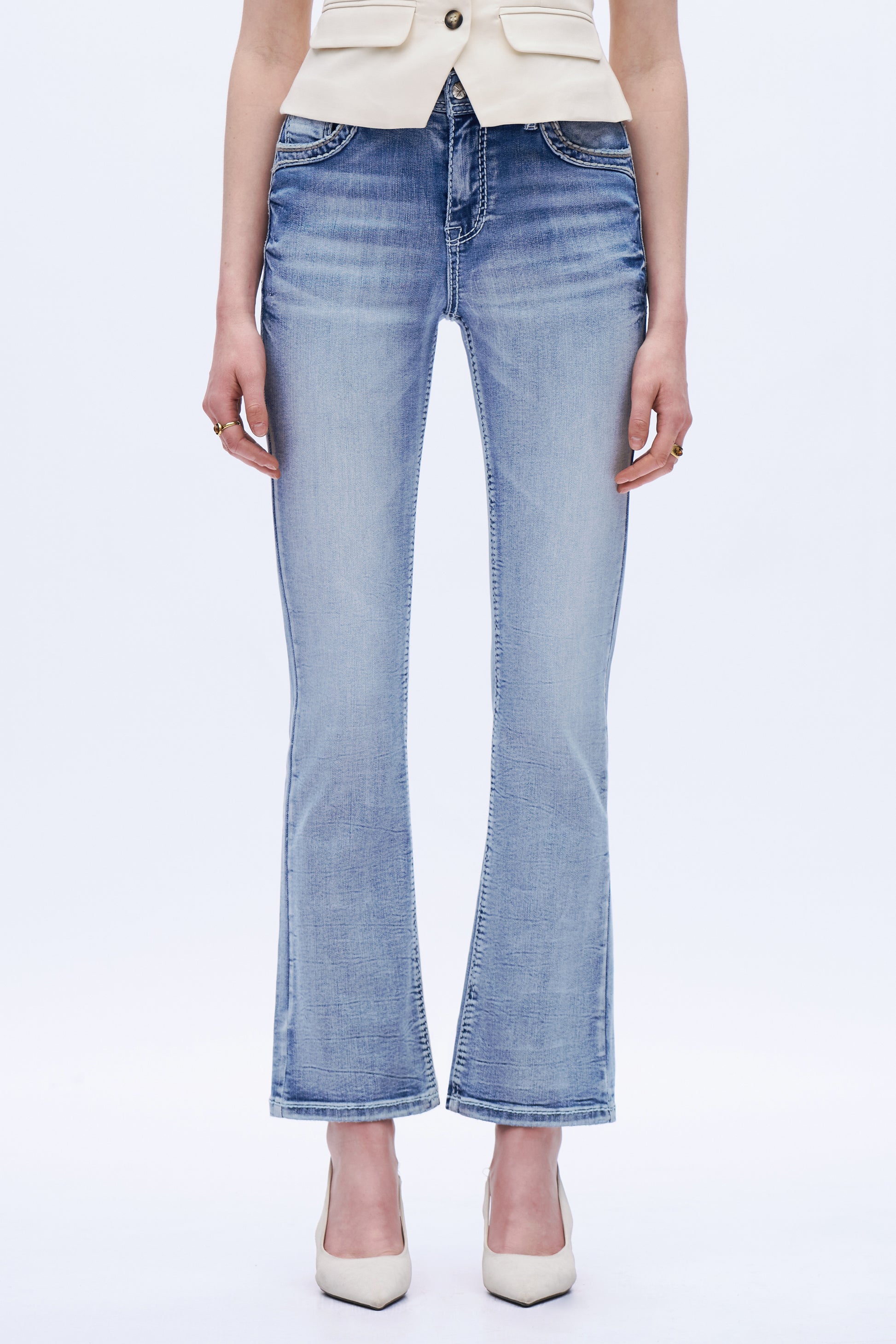 Light Blue Washed, Mid-rise bootcut jeans