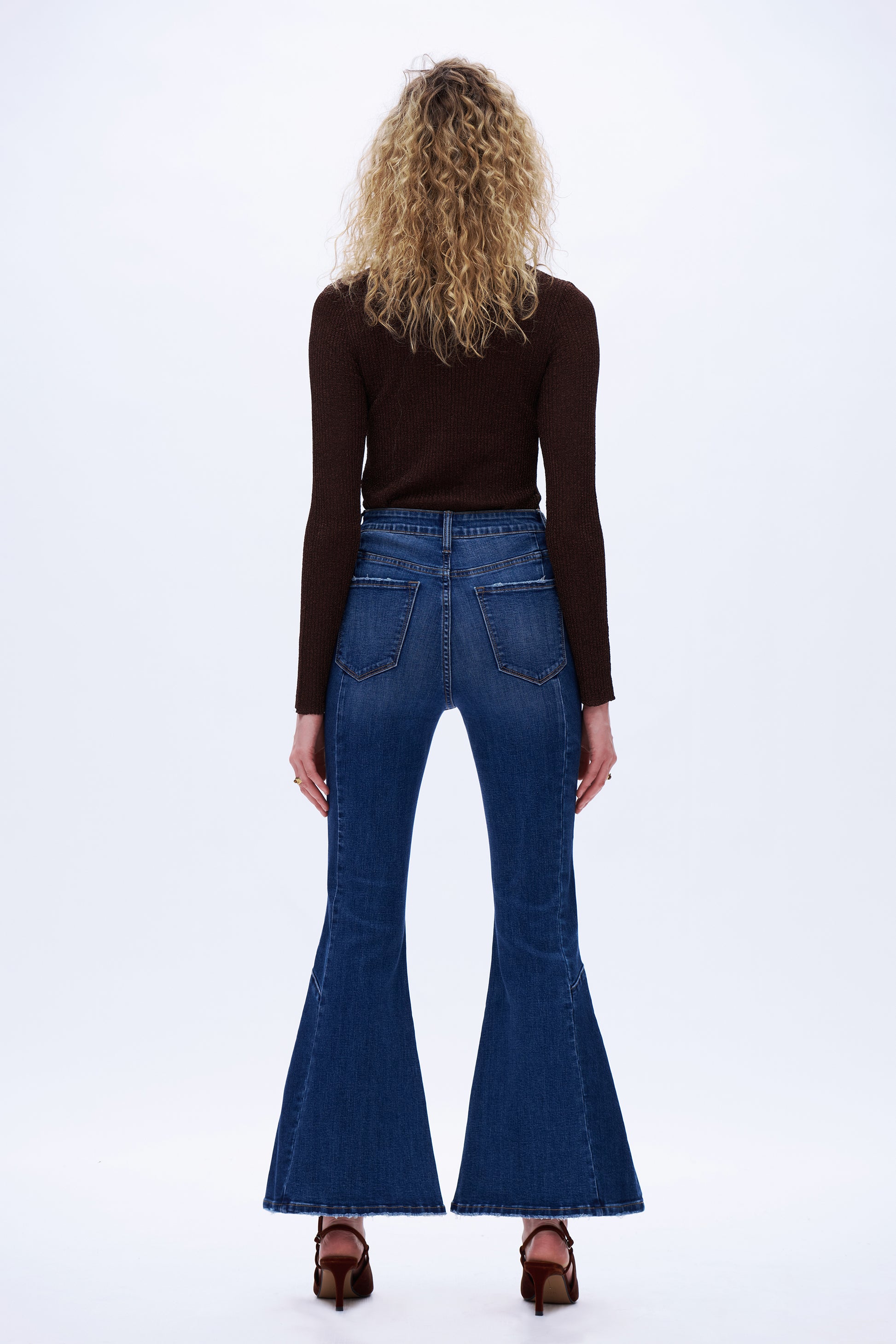 High Rise Flare Leg Denim Jeans DEFM1009 Dark Blue