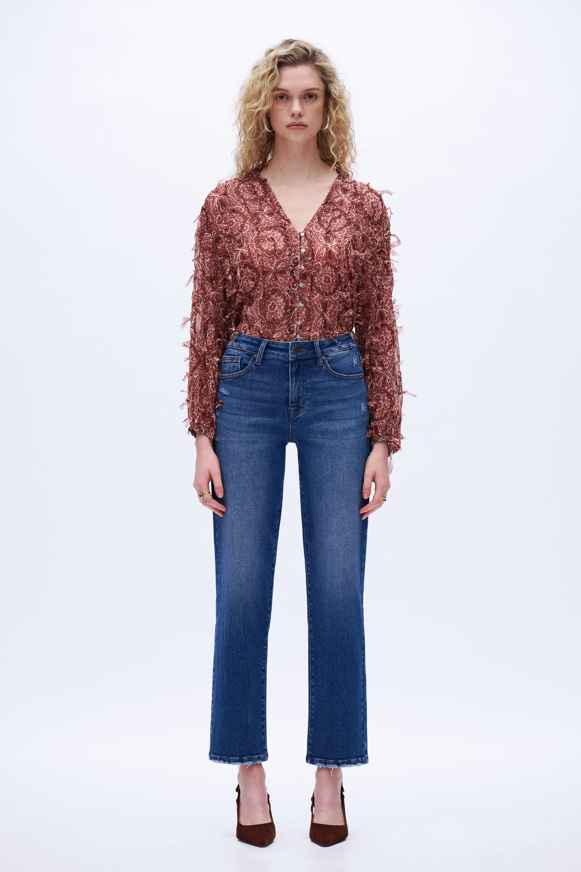 Mid Rise Straight Denim Jeans DET5004 Dark Blue