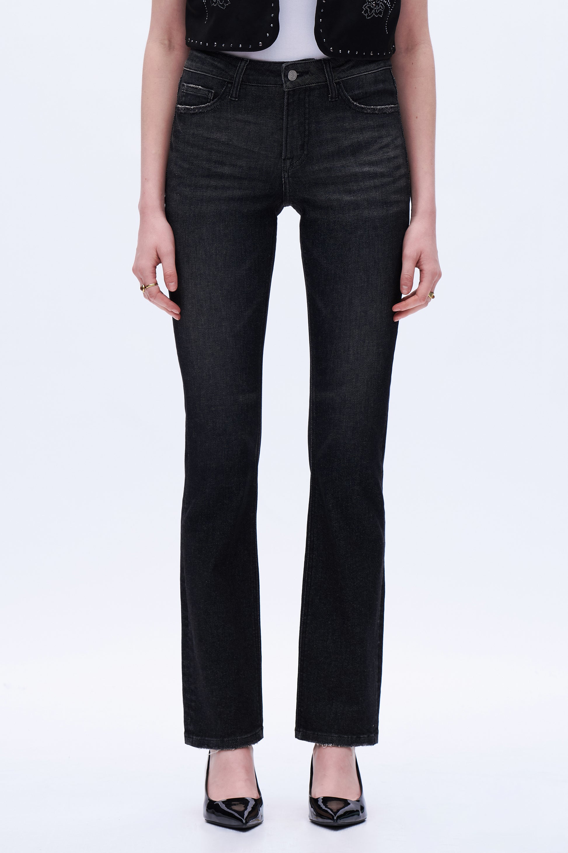 Mid Rise Straight Leg Denim Jeans DET5007 Black