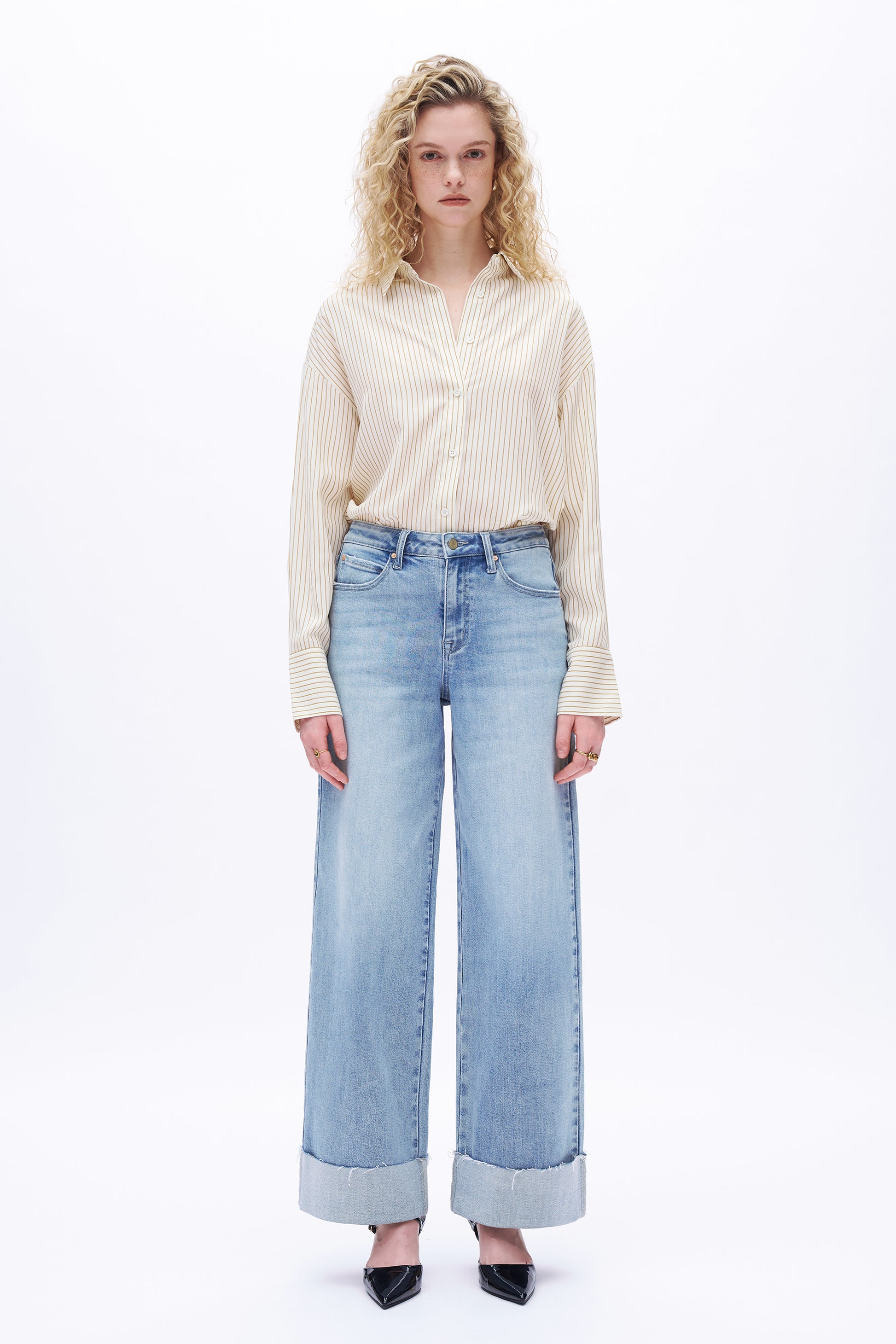 Mid Rise Wide Leg Denim Jeans DEW8003 Light Blue