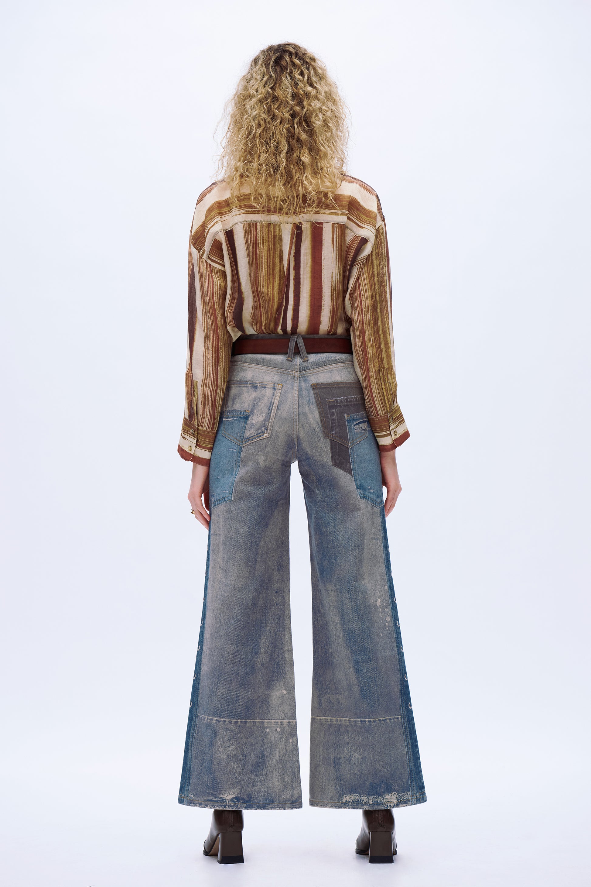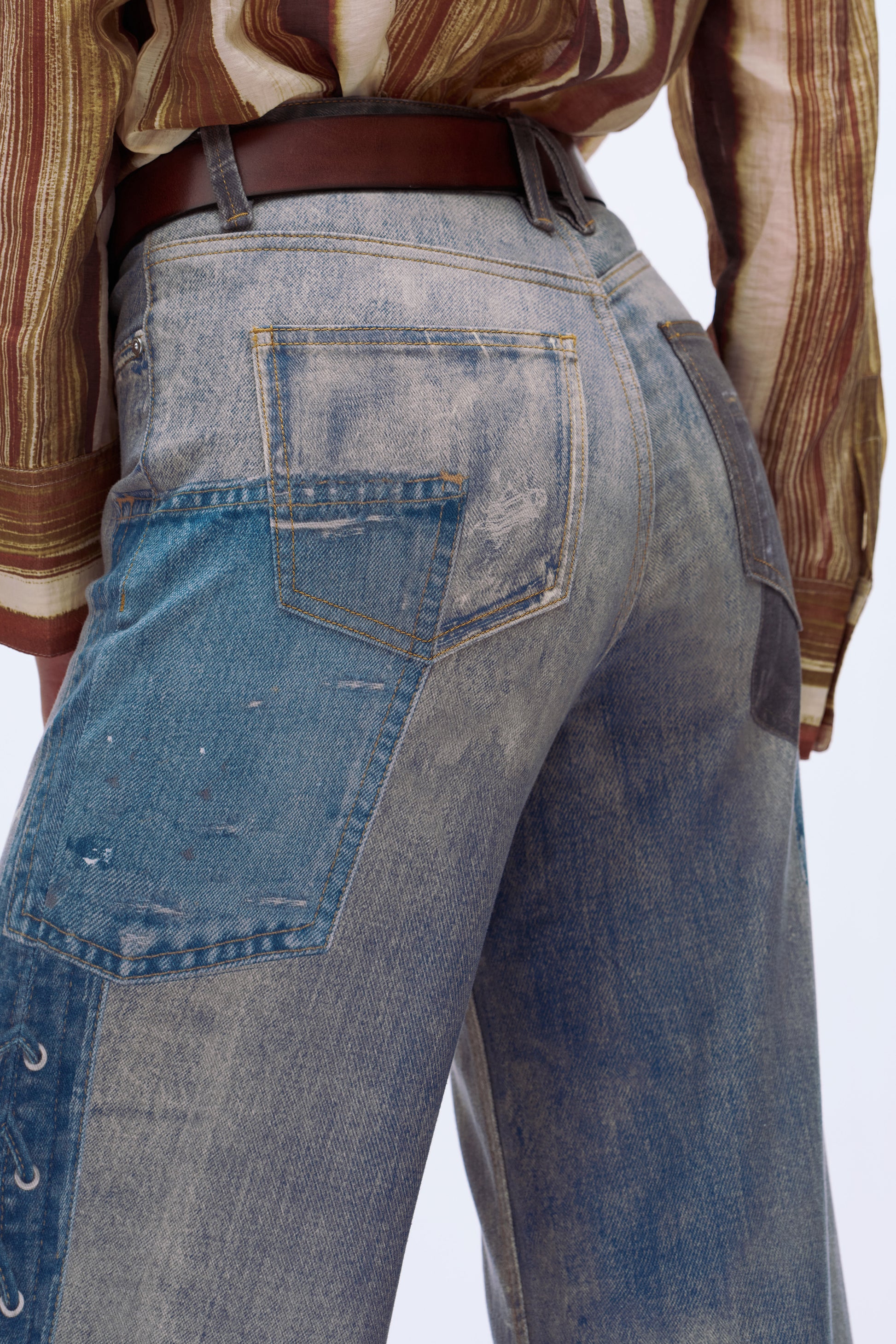 High Rise Wide Leg Printed Denim Jeans DEW8009 Medium Blue